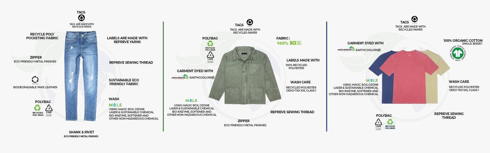 At Hraccs, we strive for a better world and a thriving environment. As apparel vendors in USA and one of the leading sustainable clothing manufacturers in USA, sportswear denim manufacturers, and bulk clothing suppliers worldwide. We believe in the long-term preservation of our resources. We take it upon ourselves to create a circular economy by eliminating waste and utilizing resources optimally for the benefit of both the world and society.
